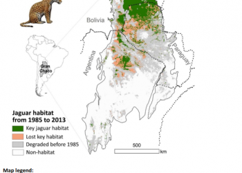 Los autores evaluaron los cambios en el hábitat del jaguar de 1985 a 2013 en toda la extensión original de 1.1 millones de km² de la ecorregión del Gran Chaco, un bosque tropical seco y una sabana que alguna vez fue más de 50% más grande que el estado de Texas (695.662 km²), que se extiende desde el sur de Bolivia hasta Paraguay y bien en el centro-norte de Argentina.