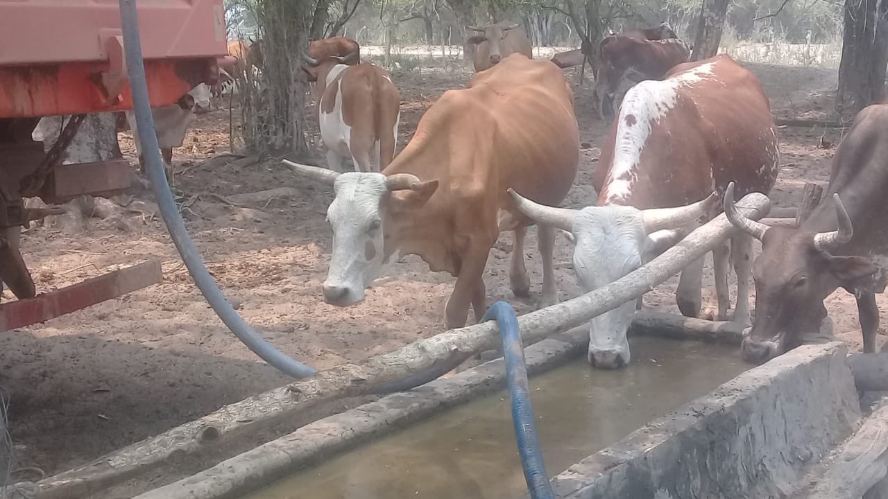 Filadelfia,RCC.- La distribución se realizó por medio de camiones volquetes y una moto bomba, para así asistir especialmente en el llenado de tanques reservorios del vital líquido y mitigar los impactos que generan la situación climática.