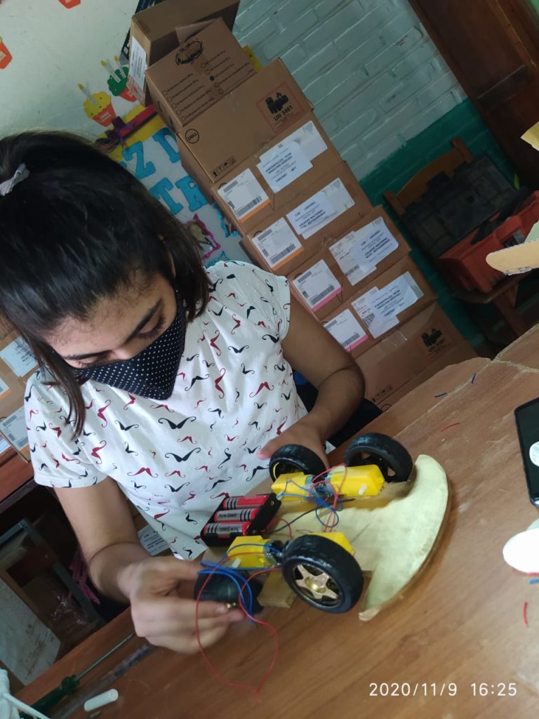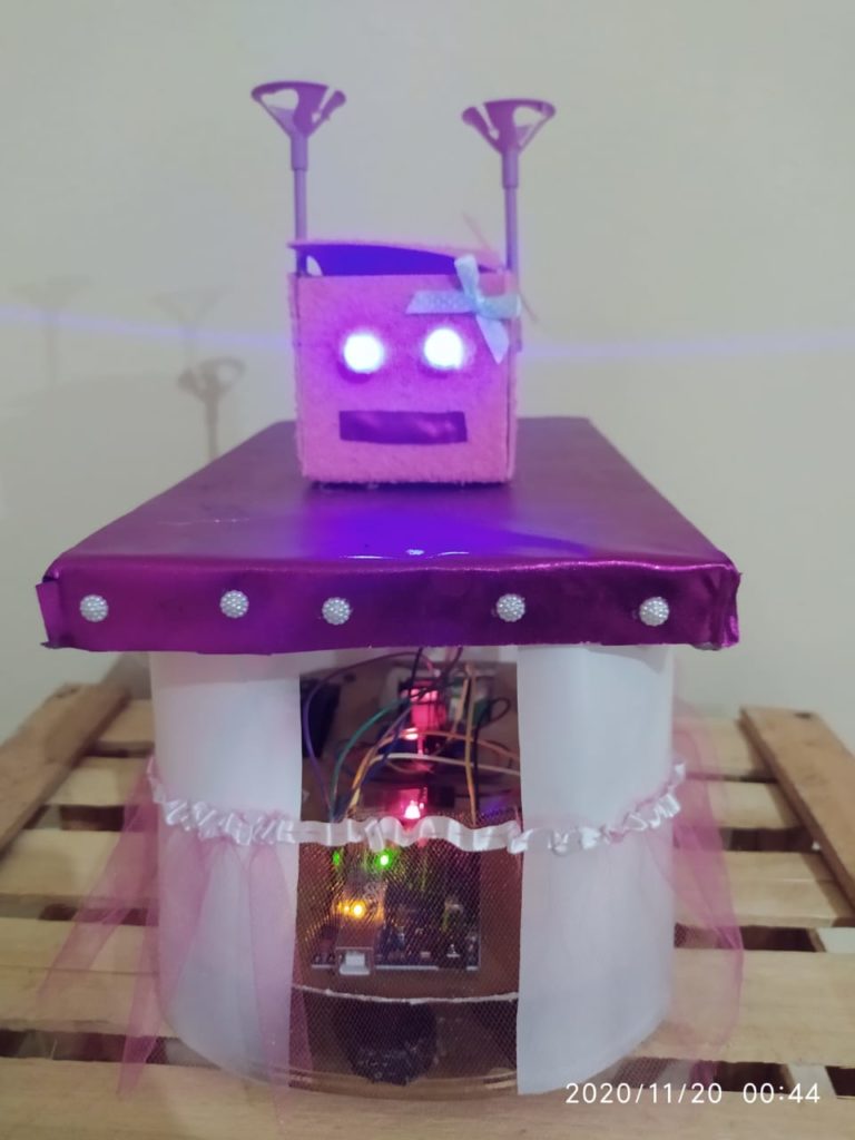 El prototipo cumple las funciones de movimiento a través de los materiales reciclados de la basura, conectando con módulo bluetooth a un teléfono móvil o tablet realizando movimientos hacia adelante, atrás y realiza círculos sobre su eje ambos lados. Fue diseñado para ejercer trabajos de recolección con adecuaciones de tecnología mas avanzada, tecnología que tiene un costo muy alto y ante las limitaciones Iris decidió readaptar con materiales reciclados.