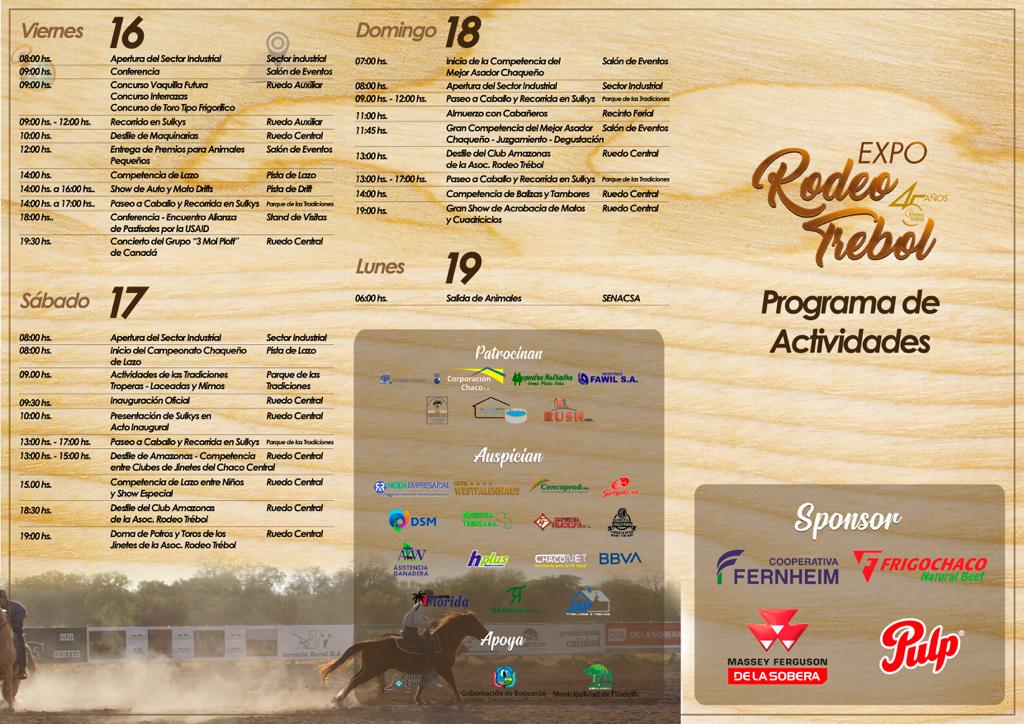 La Expo Trebol 2019 se está llevando a cabo en el Chaco Central y ofrece un amplio programa de actividades relacionadas a la producción y la competencia, como así también actividades de diversión.
