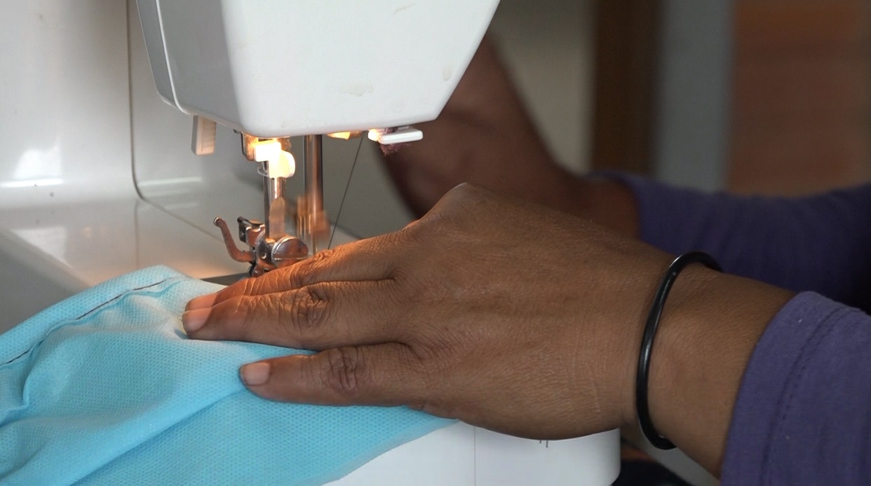 MUJER ELABORANDO TAPABOCAS. FOTO: RCC