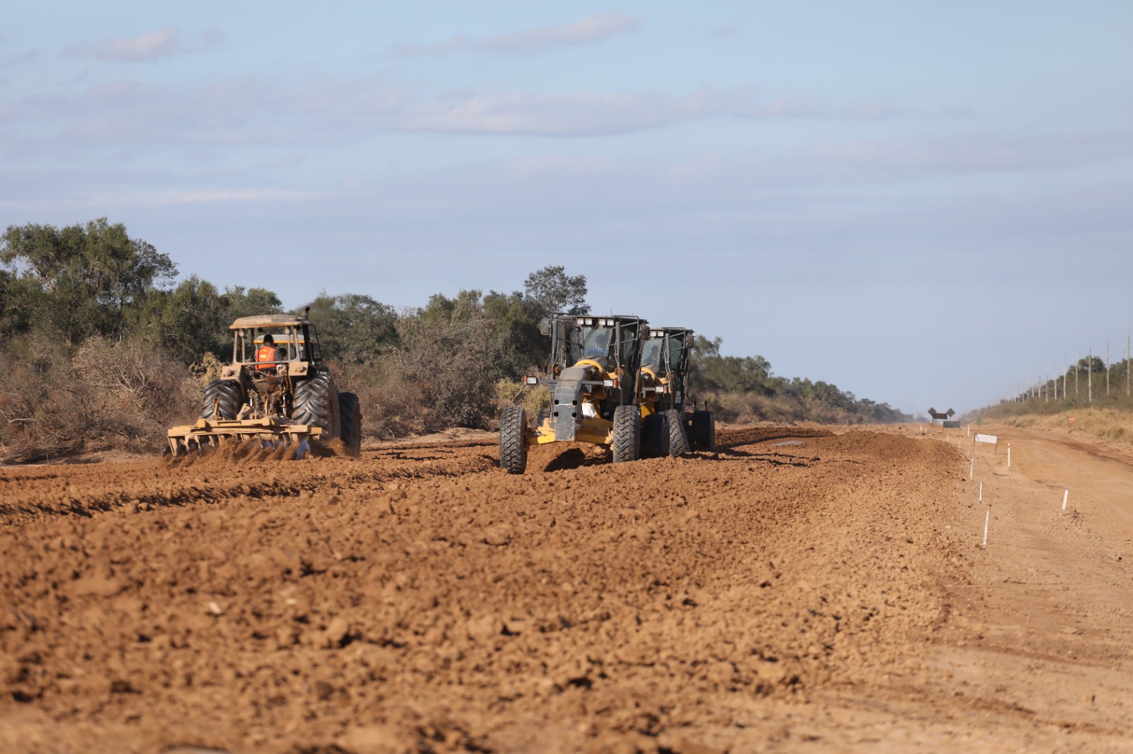Las tareas en ejecución abarcan la instalación de un obrador con laboratorio de control de calidad, limpieza de la franja de dominio, retiro de alambrados, construcción de terraplenes y preparación de la subrasante con cal (CBR >15%), etapa fundamental para garantizar una base sólida antes del asfaltado.