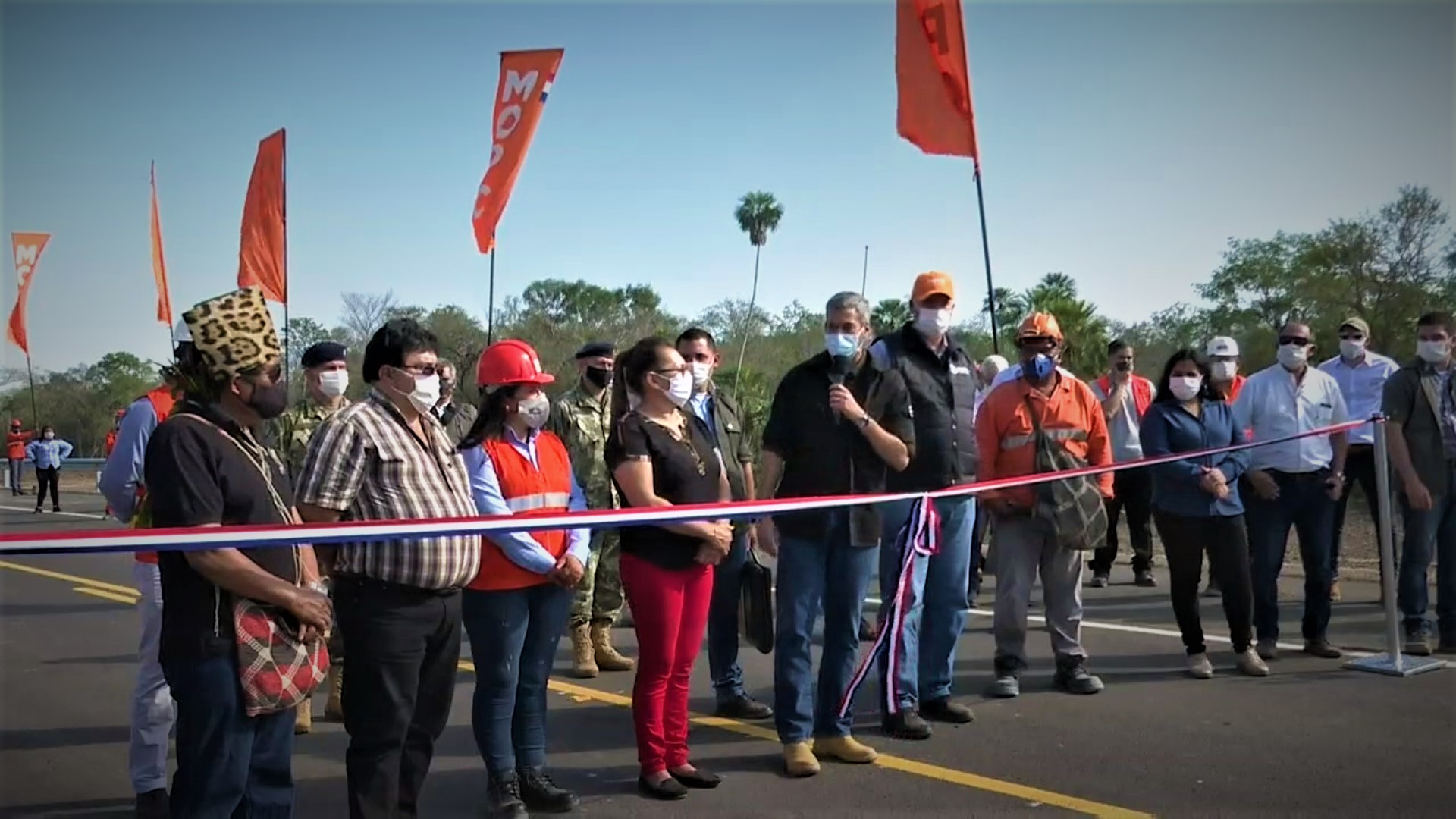 Filadelfia, RCC.- El presidente de la República, Mario Abdo Benítez y el titular de Obras Públicas, Arnoldo Wiens, encabezaron una inauguración más de la Bioceánica. El mandatario en su discurso mencionó que tiene mucho aprecio a esta obra y la considera el legado de su gestión, incluso confesó que en su despacho guarda un pedazo del asfaltado.