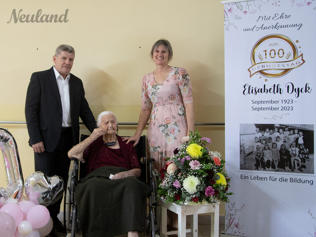 La Sra. Dyck es una figura icónica en Neuland, habiendo contribuido de manera significativa al desarrollo y crecimiento de esta comunidad desde sus primeros días. Su legado perdura en los corazones de quienes han tenido el privilegio de conocerla y trabajar junto a ella.