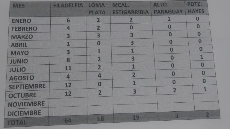 El Dpto. de Boquerón supera la cantidad de atención pero se abarca a los demás departamentos del Chaco, Alto Paraguay y Pdte. Hayes respectivamente, a parte de hacer el acompañamiento vía telefónica.