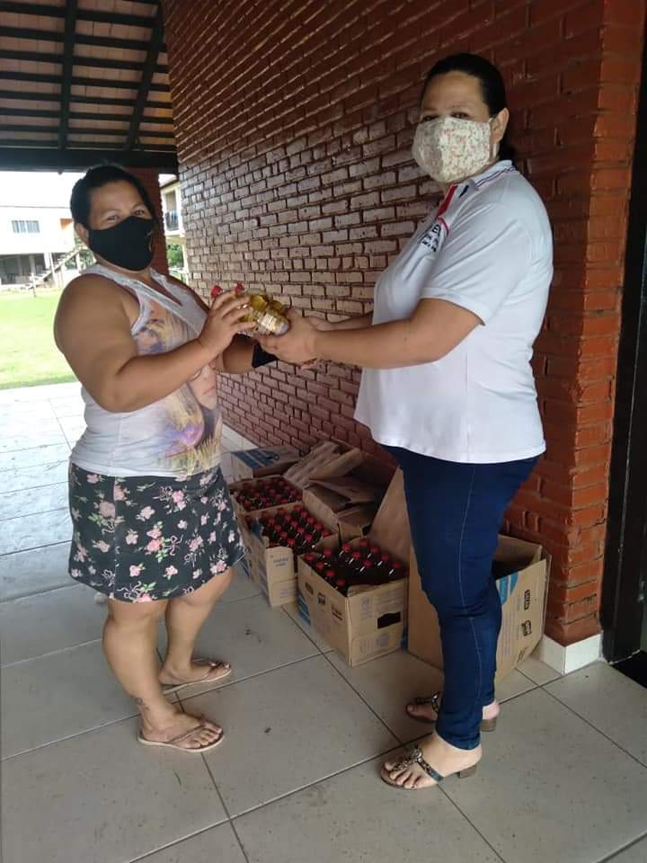 Para cubrir la falencia de la comuna el director busco contactos con concejales departamentales de los cuales cinco aportaron para la compra de los litros de aceite que faltaban, además se sumaron a la colaboración el cónsul de Puerto Murtinho y otros amigos personales del profesor Rumildo. Tras concretarse la adquisición, este martes inició la entrega para cada padre de los alumnos de la institución.