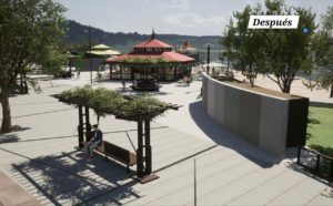 La primera etapa incluye la rehabilitación del Monumento a Benjamín Aceval, la construcción de un nuevo monumento alegórico, la instalación de señalética cultural y un mapa turístico, además de sanitarios públicos, cantinas, refugios techados, explanadas con mobiliario urbano,7 senderos peatonales y de trote, bicisendas, juegos infantiles, canchas deportivas, playa y terrazas ribereñas.