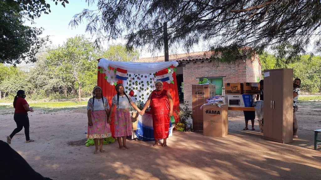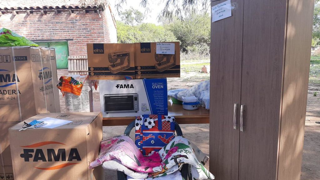 Se realizó la entrega de una cocina a gas, horno eléctrico, heladera, armario, telas, maquina de coser y mesa, a la comisión de mujeres de la comunidad Guaraní de Santa Teresita, distrito de Mcal Estigarribia.