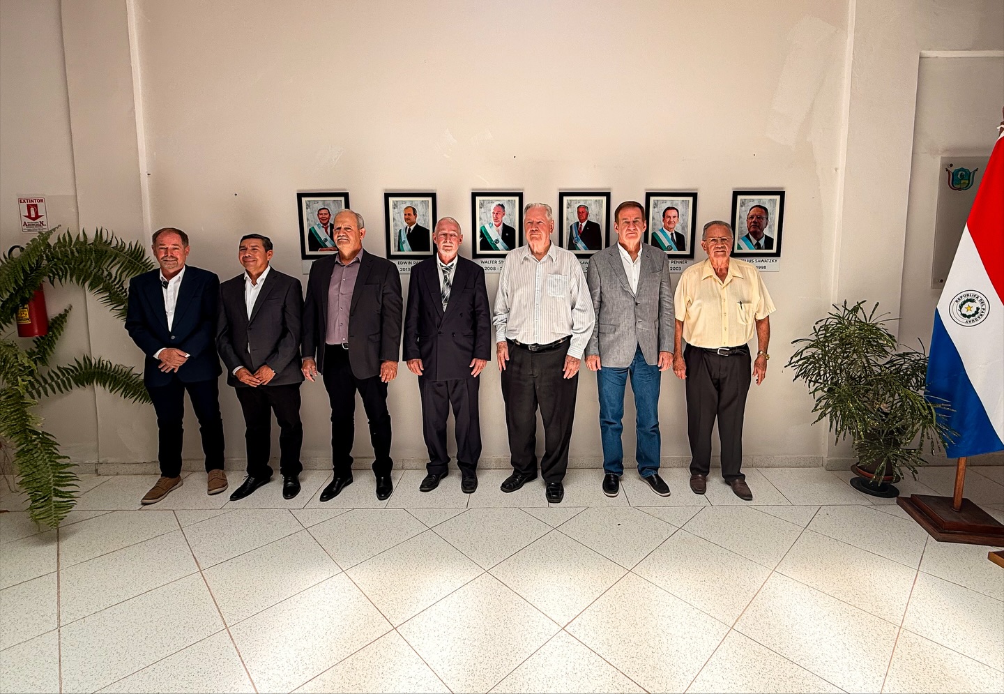 Los retratos corresponden a los exgobernadores Cornelius Sawatzky (1993–1998), senador Orlando Penner (1998–2003), David Sawatzky (2003–2008), Walter Stockl Nopper (2008–2013), Edwin Pauls Friesen (2013–2018) y el Dr. Dario Rafael Medina (2018–2023). Todos ellos marcaron etapas clave en el desarrollo del departamento, impulsando proyectos y políticas que contribuyeron al crecimiento sostenido de Boquerón.