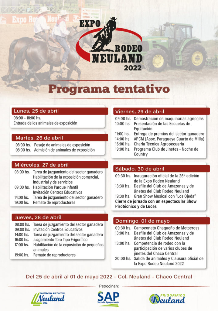 La edición número 26 de la Expo Rodeo Neuland se está haciendo esperar desde hace dos años a raíz de la suspensión de grandes actividades a causar de la pandemia. Este año se están retomando la mayoría de las actividades de entretenimiento en el Chaco y con ello se espera que una gran cantidad de personas puedan asistir.