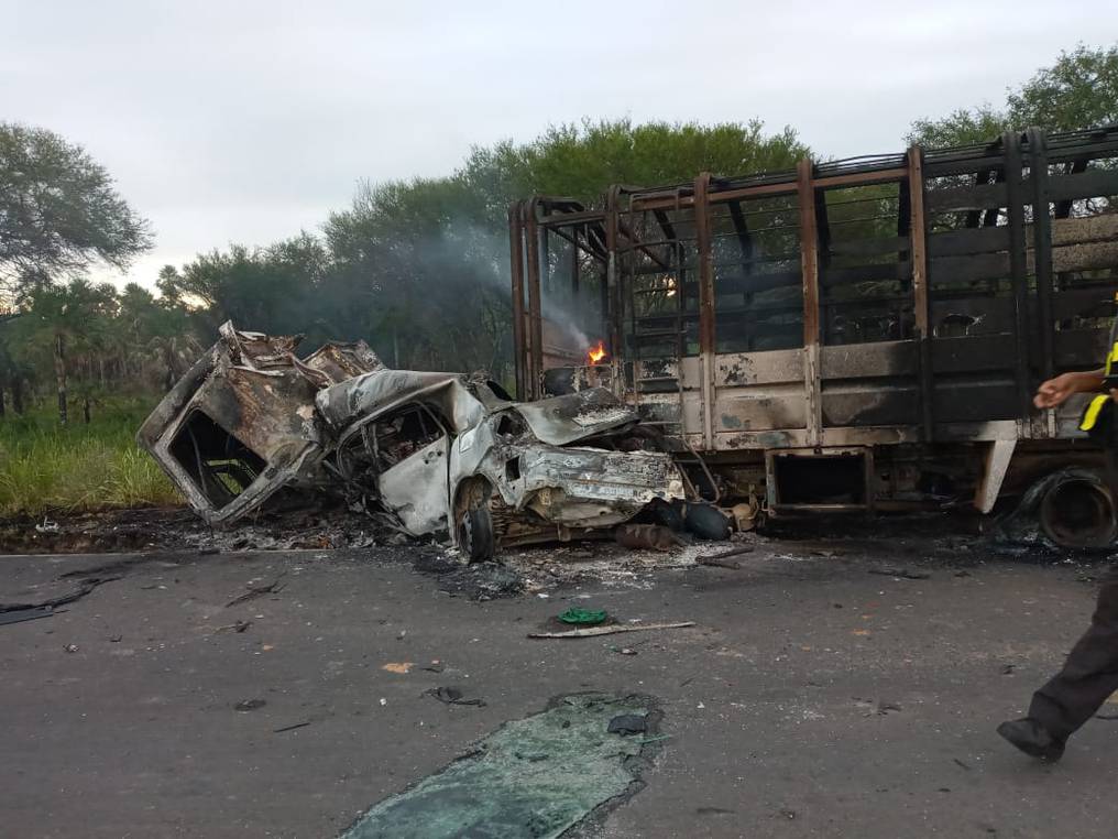 Filadelfia, RCC.- La Dirección Policial de Presidente Hayes, a través de la Subcomisaría de 2ª de Estero Pirahu informó que el accidente ocurrió a las 01:40 aproximadamente cerca de Pozo Colorado, entre un camión tipo transganado de la marca Mercedes Benz con carrocería de madera guiado por Líder Giménez Paez y una Toyota Runx en el que se trasladaba la familia Jara desde Filadelfia rumbo al Oriental para pasar las fiestas de fin de año.