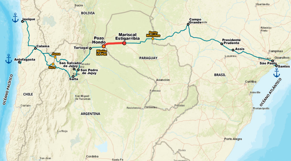 La ejecución de dicho tramo vial ha sido considerado como prioritario por los Gobiernos de Argentina, Brasil, Chile y Paraguay en la “Declaración de Asunción sobre Corredores Bioceánicos” de diciembre de 2015, cuando acordaron “impulsar la realización de los estudios técnicos y formular las recomendaciones pertinentes para la pronta concreción del corredor carretero Campo Grande – Puerto Murtinho (Brasil) – Carmelo Peralta – Mariscal Estigarribia – Pozo Hondo (Paraguay) – Misión La Paz – Tartagal – Jujuy – Salta (Argentina) – Sico – Jama – Puertos de Antofagasta – Mejillones – Iquique (Chile)”.