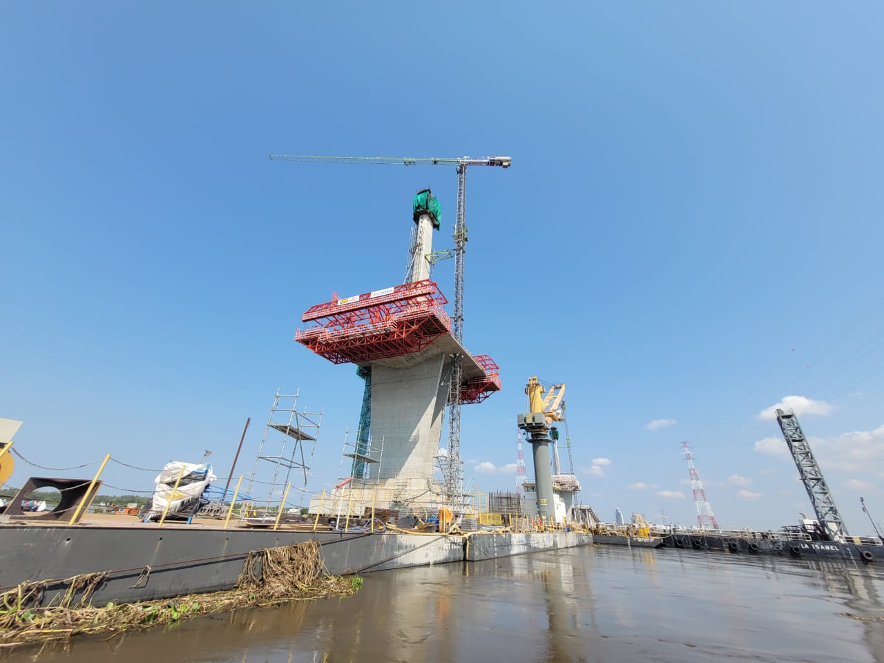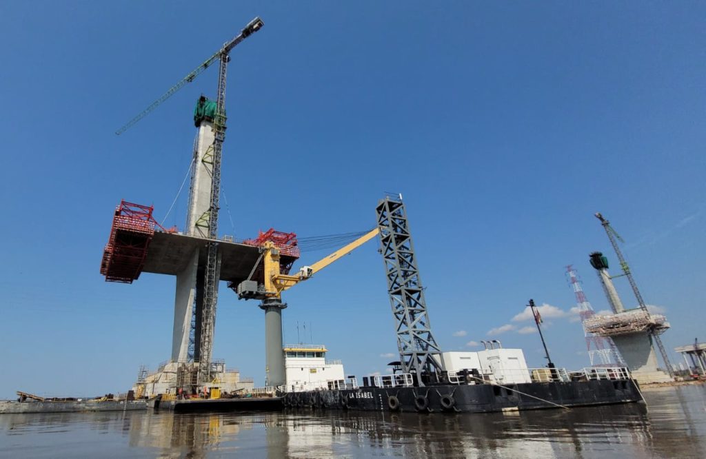 Las dovelas, de 6 metros cada una, irán avanzando en forma simultáneas en ambas márgenes mediante los carros de avances que fueron montados en los pilones principales que se encuentran en el lecho del río Paraguay.