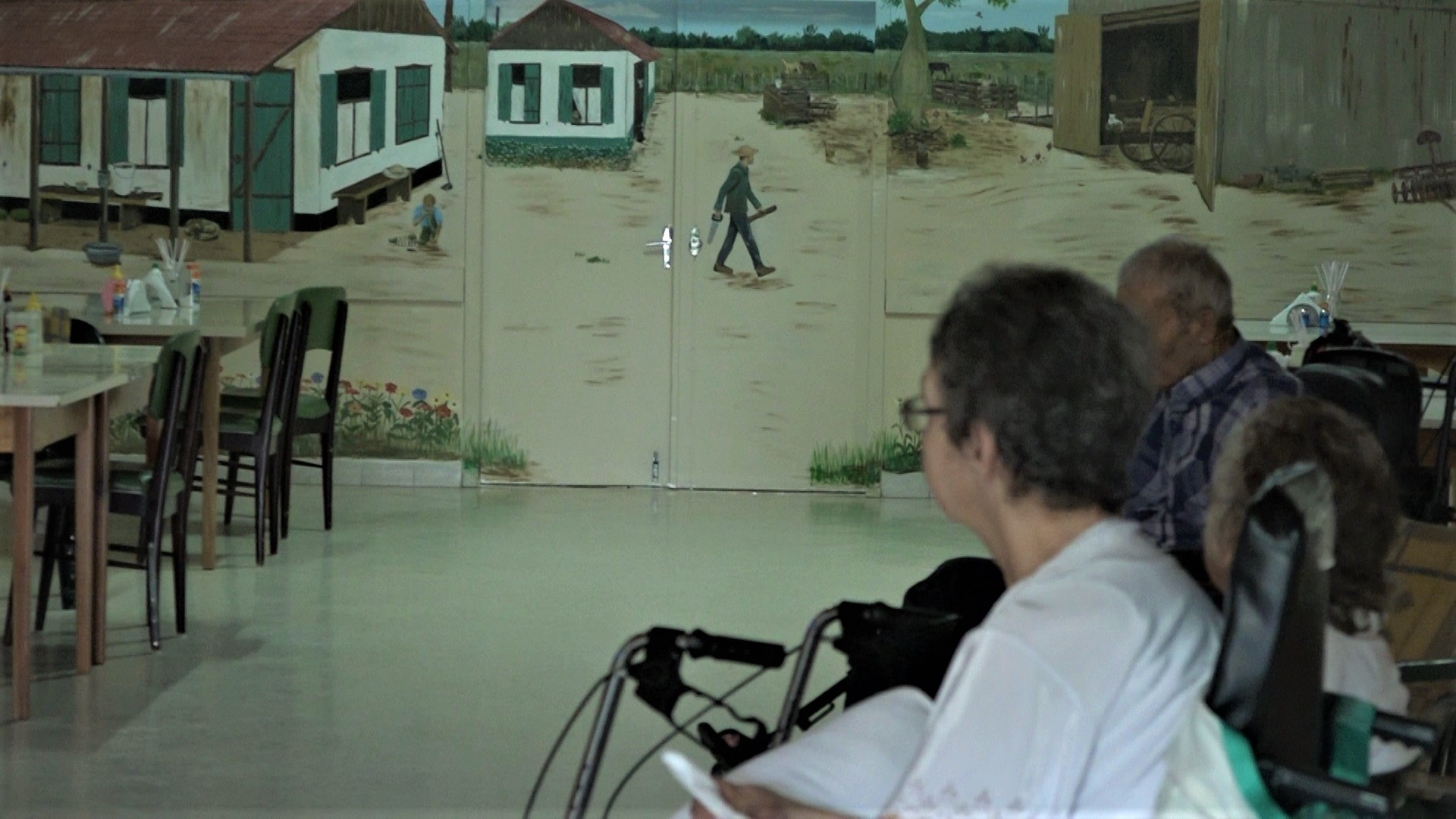 La Lic. Harder comentó que los dibujos que hicieron están inspirados en la niñez de la época colonial y ayudan a que los mismos no se sientan encerrados en un lugar pequeño, sino que dan la impresión de que están en un lugar más amplio y con vistas familiares que estimulan los recuerdos.