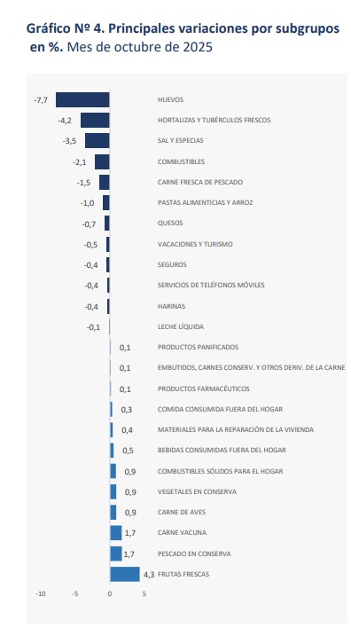 El resultado de octubre se caracterizó principalmente por reducciones en combustibles y bienes durables importados, que compensaron parcialmente los aumentos en alimentos y ciertos servicios.