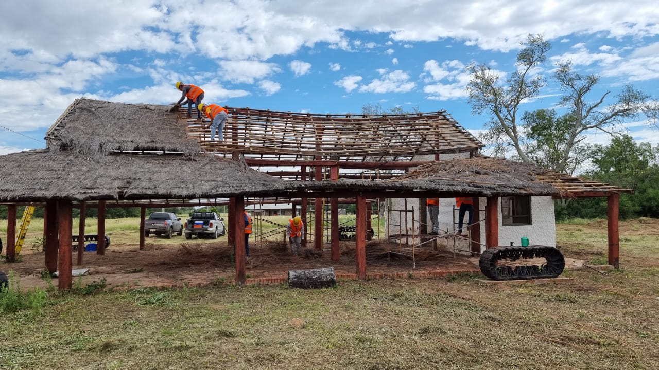 En el sitio, Héctor Alonso, un referente de la empresa R & E ingeniería, subcontratada de la empresa Rovella Carranza S.A, detalló que las labores realizadas por su equipo abarcan la limpieza, el despeje de los techos de paja, el reemplazo de algunas piezas, el tratamiento de conservación de las maderas, mediante la aplicación de insecticidas para protegerlas de las termitas (kupi’i), entre otras labores como la limpieza del cementerio.