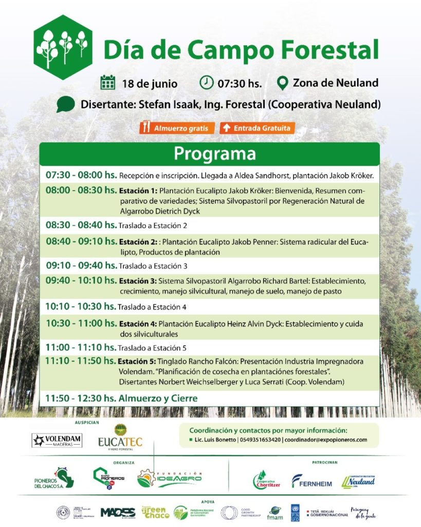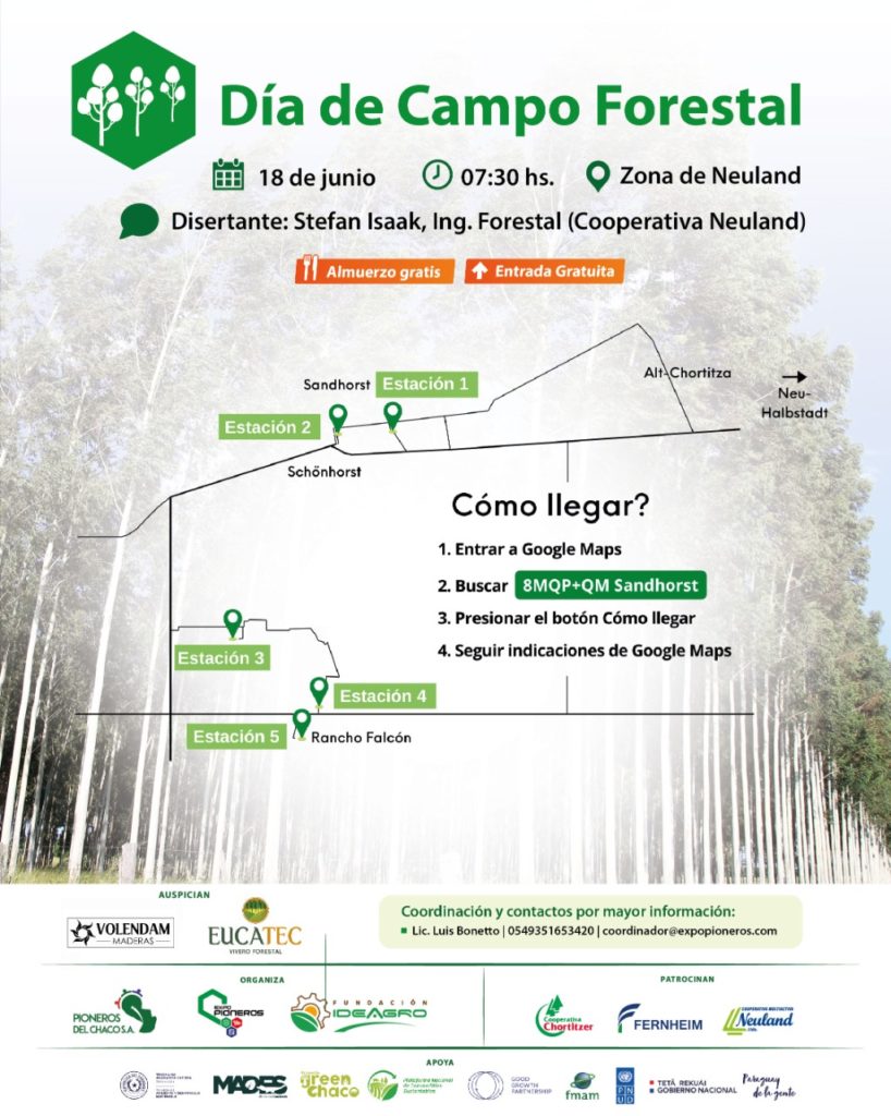 El Ing. Forestal, Stefan Isaak, del Servicio Agropecuario de la Cooperativa Neuland indicó que será un recorrido por parcelas de eucaliptos, paraíso y diversos sistemas silvopastoriles con el objetivo de observar en la práctica la industrialización forestal del Chaco Central, que tiene un potencial productivo increíble.