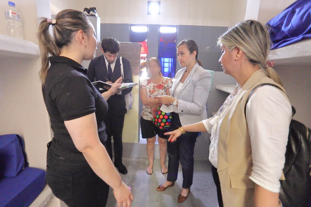 Las magistradas Sandra Kirchhofer, Rosana Bogarín, Cinthia Sostoa, Nidia Wyder y Elsa Idoyaga recorrieron exhaustivamente las instalaciones del nuevo complejo, verificando áreas de alojamiento, salud, educación, alimentación y recreación, con el objetivo de constatar que se cumplen los estándares nacionales e internacionales para la atención y tratamiento de las mujeres privadas de libertad.