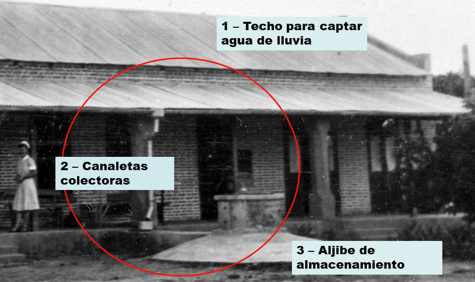 En paralelo a lo anterior, se desarrollaron también las técnicas de elaboración de ladrillos quemados. Esto permitió la construcción de aljibes, que era ya una tradición que se practicaba en la Argentina y se habían visto construcciones en el viaje de entrada al Chaco. Con la construcción de aljibes como reservorio para almacenar agua empiezan las instalaciones de canaletas en los techos de chapa de zinc para cosechar el agua de las lluvias.
