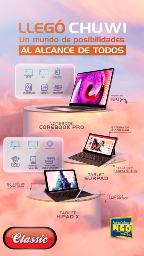 En cuanto a CHUWI, llegaron los siguiente artículos: