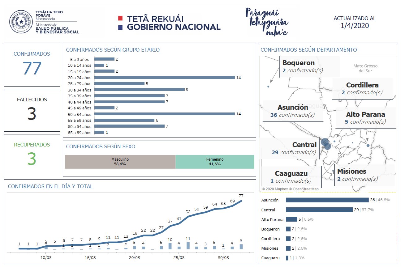 Es importante mencionar que ayer se dio a conocer el primer caso confirmado de coronavirus en Boquerón, una joven que provino del exterior y que está en buen estado de salud guardando cuarentena total en su casa.