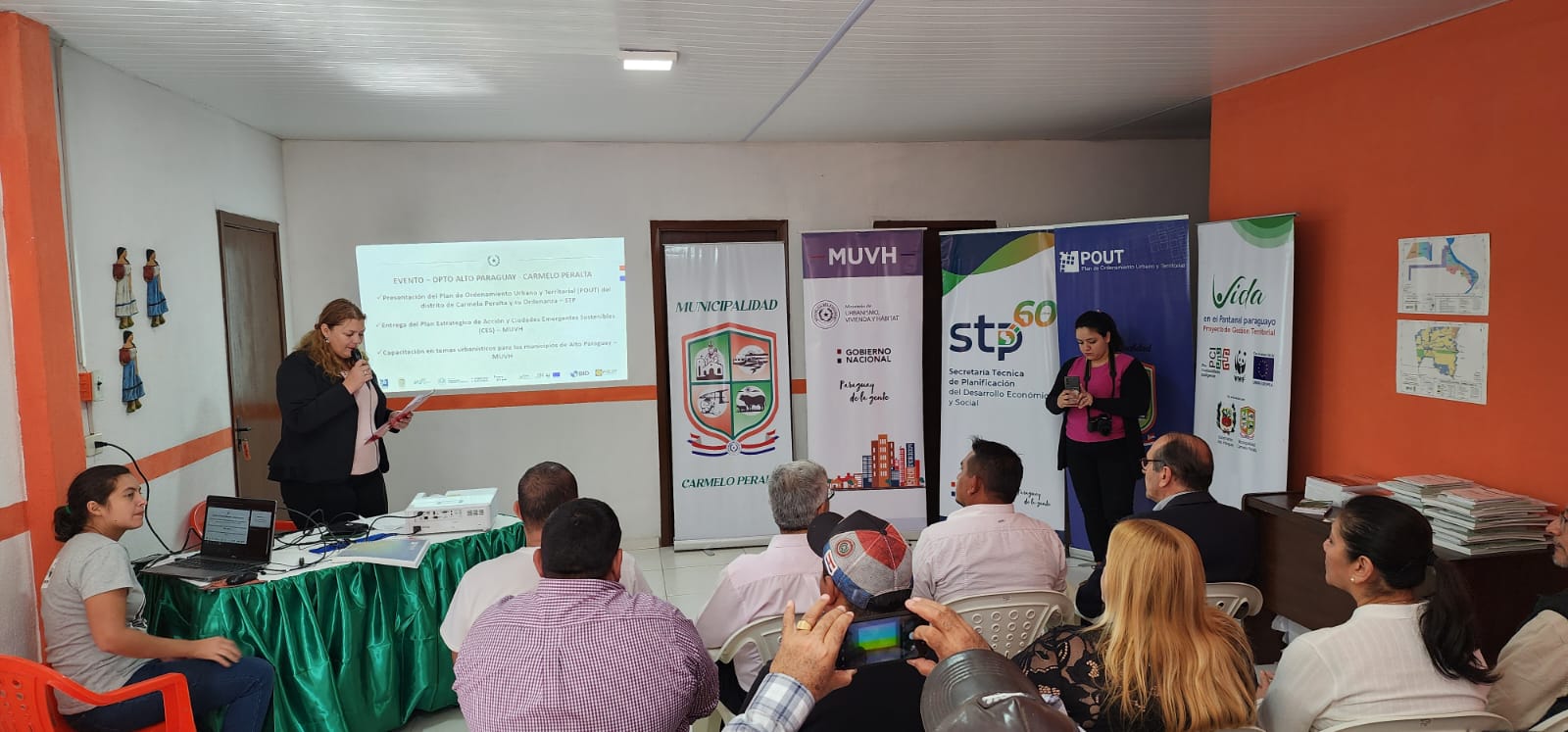 La STP, quien asiste técnicamente a los diferentes municipios del país en la elaboración de sus planes de desarrollo y planes de ordenamiento territorial, coordinó la Mesa POUT de Carmelo Peralta, la cual está conformada por instituciones del Poder Ejecutivo, organizaciones de la sociedad civil y representantes del municipio. Su elaboración involucró un arduo trabajo con diversos actores, como técnicos especializados, autoridades municipales y la comunidad a través de los referentes de todos los sectores. Entre ellos, se integra el CES, así como la definición de zonas urbanas y rurales, la identificación de las áreas de riesgo, la planificación de espacios públicos, la preservación del patrimonio cultural y natural, y la promoción del turismo y la inversión en la región.