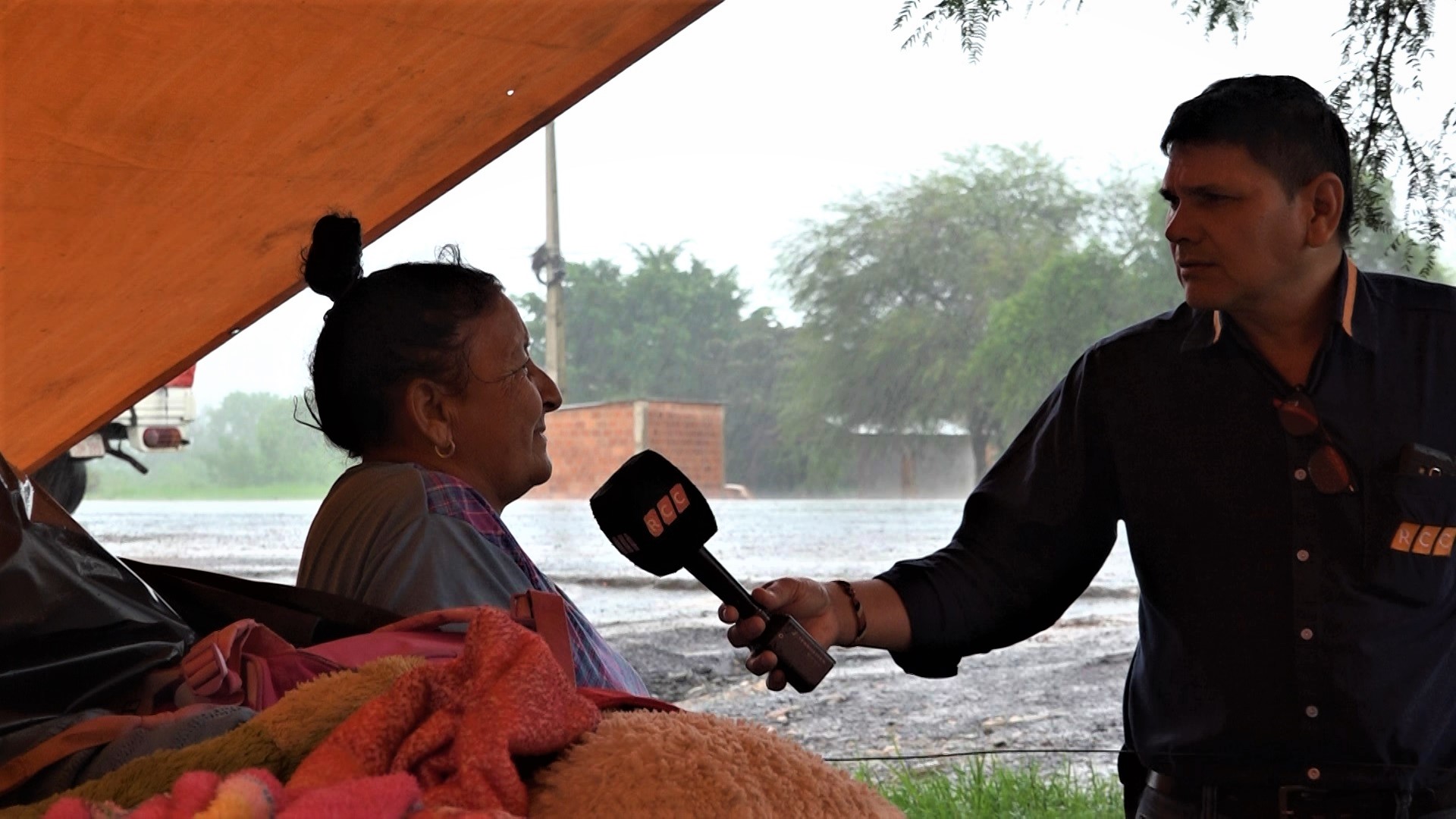 Filadelfia, RCC.- María Luisa Medina, una de las pobladoras de Cruce Pioneros, y que posee su vivienda a metros de la ruta Transchaco comentó a la RCC que, a raíz de las inundaciones tuvo que sacar sus pertenencias y mudarse en un refugio improvisado que armaron con carpas y tablas.