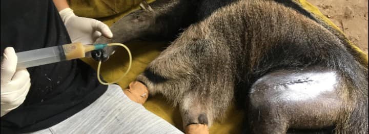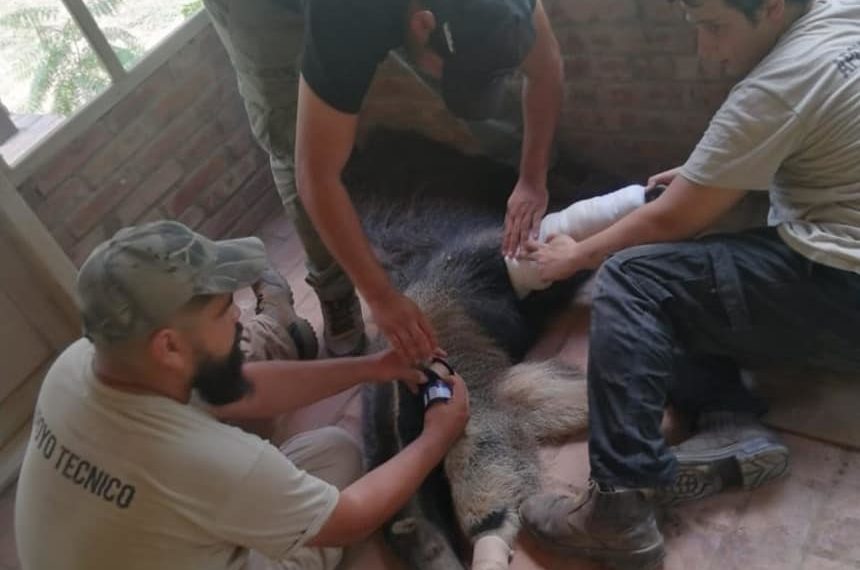 Finalmente tras varios días de tratamiento y en una situación más estable, ayer pudieron realizar la cirugía que necesitaba para la fractura sufrida y fue todo un éxito, luego de despertar de la anestesia el hormiguero pudo tomar agua por si solo. Ahora queda un tiempo largo de recuperación.
