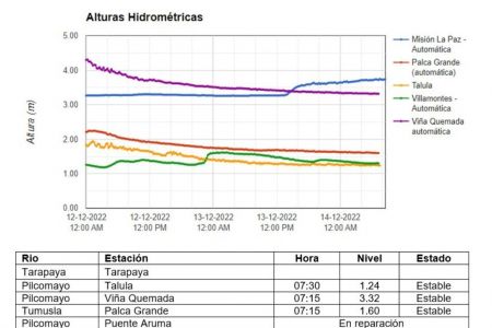 Actualmente, el nivel del Pilcomayo en la zona de Villamontes (Bolivia) se mantiene estable con 1,30 m de profundidad, mientras que en Misión La Paz-Pozo Hondo, está en ascenso, alcanzando a las 08:30 de hoy miércoles los 3,74 m.