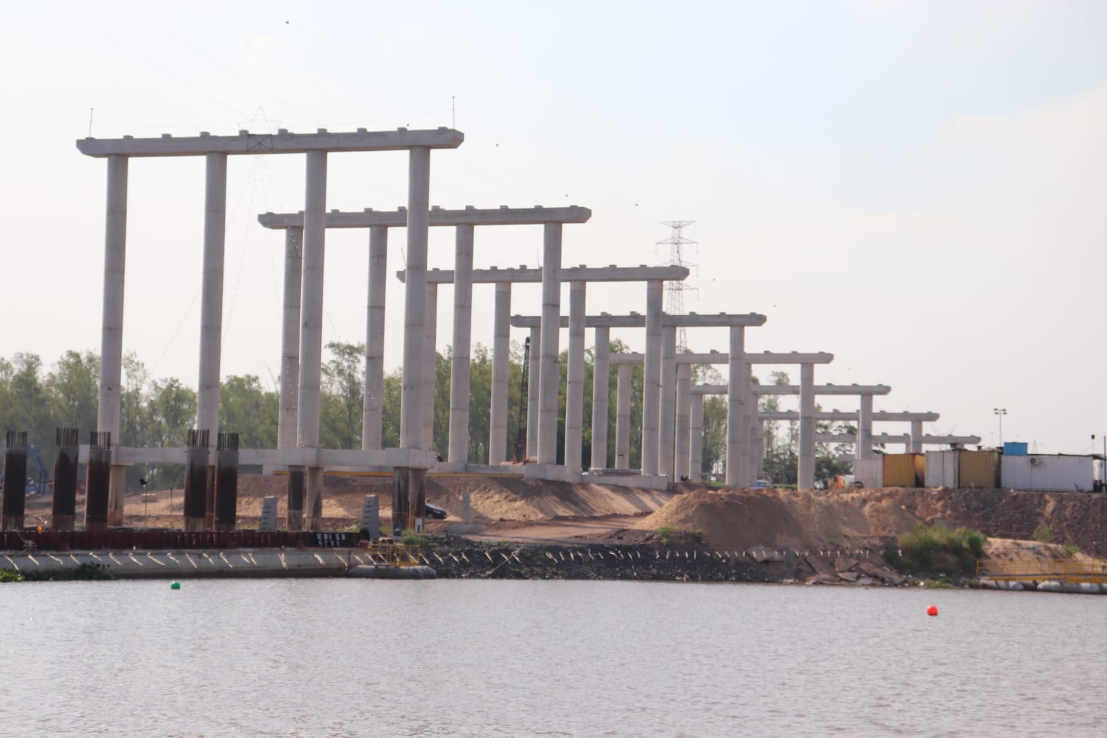 A todo esto se suma el futuro pilón principal lado Occidental, cuya fundación está totalmente terminada, además, se realizan tareas de colocación de losetas prefabricadas para encofrado de cabezal principal, así como la ejecución del pilón principal del lado Oriental, donde se culminaron 17 de los 30 pilotes previstos.