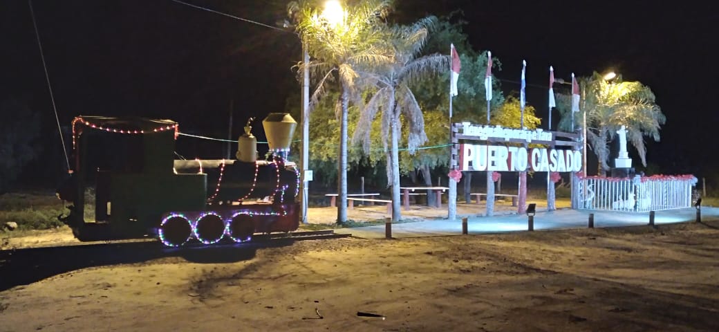 Alto Paraguay, RCC.- En la ruta de entrada de la ciudad se puede notar que el nuevo monumento de bienvenida a los transeúntes y visitantes fue adornado por el municipio con luces de colores, además ingresando un poco más hacia la avenida principal se puede notar también otras decoraciones con temática navideña.