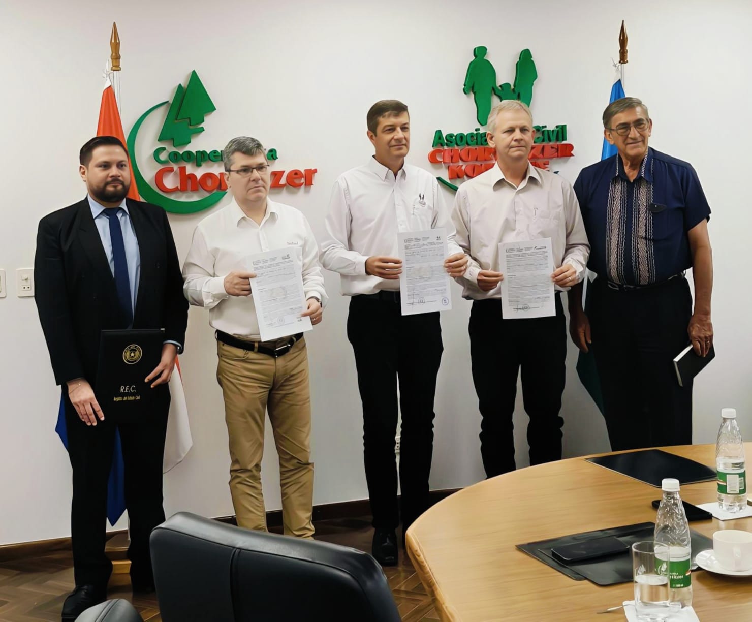 En representación del director general del REC, abogado Maximiliano Ayala, participó del acto el licenciado Miguel Bracho, director de Asesoría Técnica, quien acompañó al coordinador departamental de Boquerón, Gerhard Penner, durante la firma del convenio.