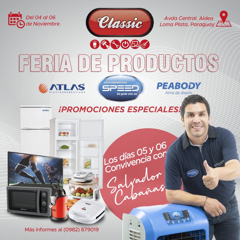 Para este jueves 04, 05 y 06 de noviembre Classic Motos prepara un evento especial, se trata de la feria de productos de las marcas Atlas Electrodomésticos, Speed Electrodomésticos y Peabody, incluyendo promociones.