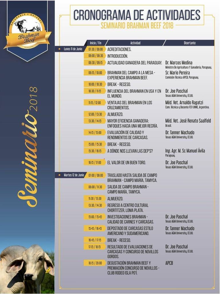 El “Seminario Brahman Beef 2018” es organizado por la Asociación Paraguaya de Criadores de Brahman, además cuenta con el apoyo de la Cooperativa Chortitzer, FrigoChorti, ABBA (American Brahman Breeders Association) y de la ATM (Universidad de Texas A&M).