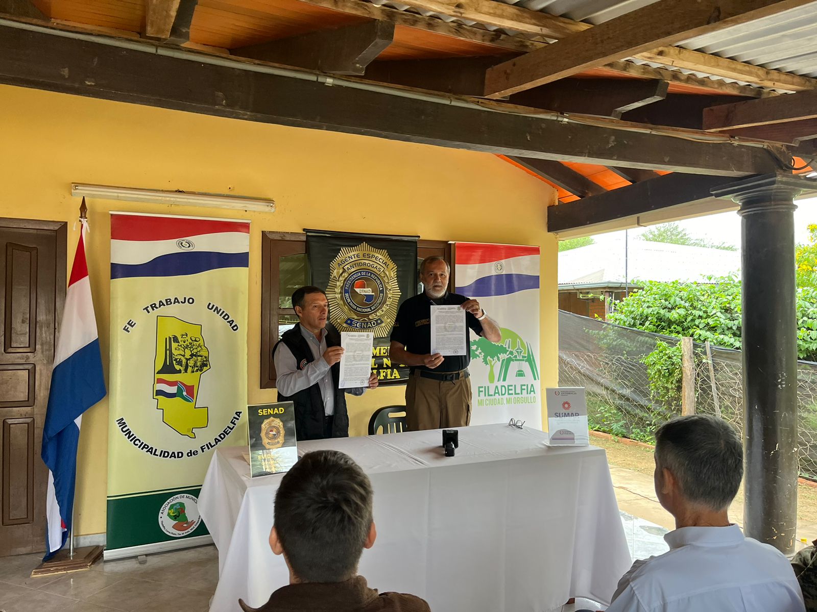 En un acto celebrado en la sede de la SENAD en Filadelfia, el Intendente Municipal, Licenciado Claudelino Rodas, y el Abogado Hugo Baptista, Director Regional de la SENAD, ratificaron su compromiso de trabajar de manera conjunta para combatir la venta y el consumo de drogas en el Departamento.