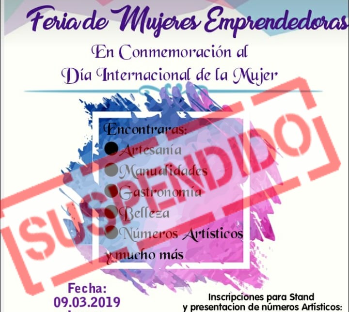 «Vemos dificultoso realizar la feria de mujeres emprendedoras cómo se tenía previsto, ya que en el acceso y predio mismo de la Plaza Amistad se observan charcones de agua que dificultaría la realización de la actividad, no obstante no queremos suspender la actividad y estaremos fijando una fecha para volver a realizar dicho evento», expresa el comunicado oficial de la organización.