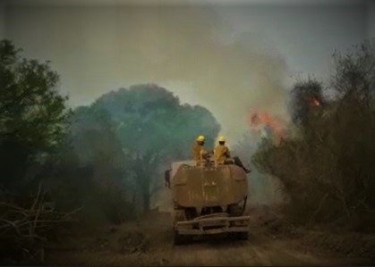 Filadelfia, RCC.- El incendio forestal que afecta El Solitario viene desde hace varios días expandiéndose, con un frente de aproximadamente 5 kilómetros, los primeros días productores de la zona intentaron hacer cortafuegos pero el terreno de la zona hizo que el esfuerzo no prospere, desde el fin de semana bomberos están en la zona.