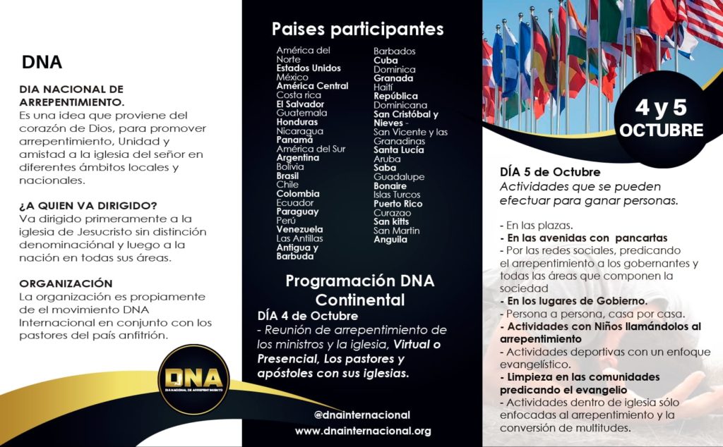 Esta actividad es impulsado por la organización Dia Internacional del Arrepentimiento (DNA) y será desarrollado en diversos puntos del mundo, pues DNA dejá a consideración de cada país la manera en que la misma será abordada en la nación, dando por opción el formato virtual o presencial.