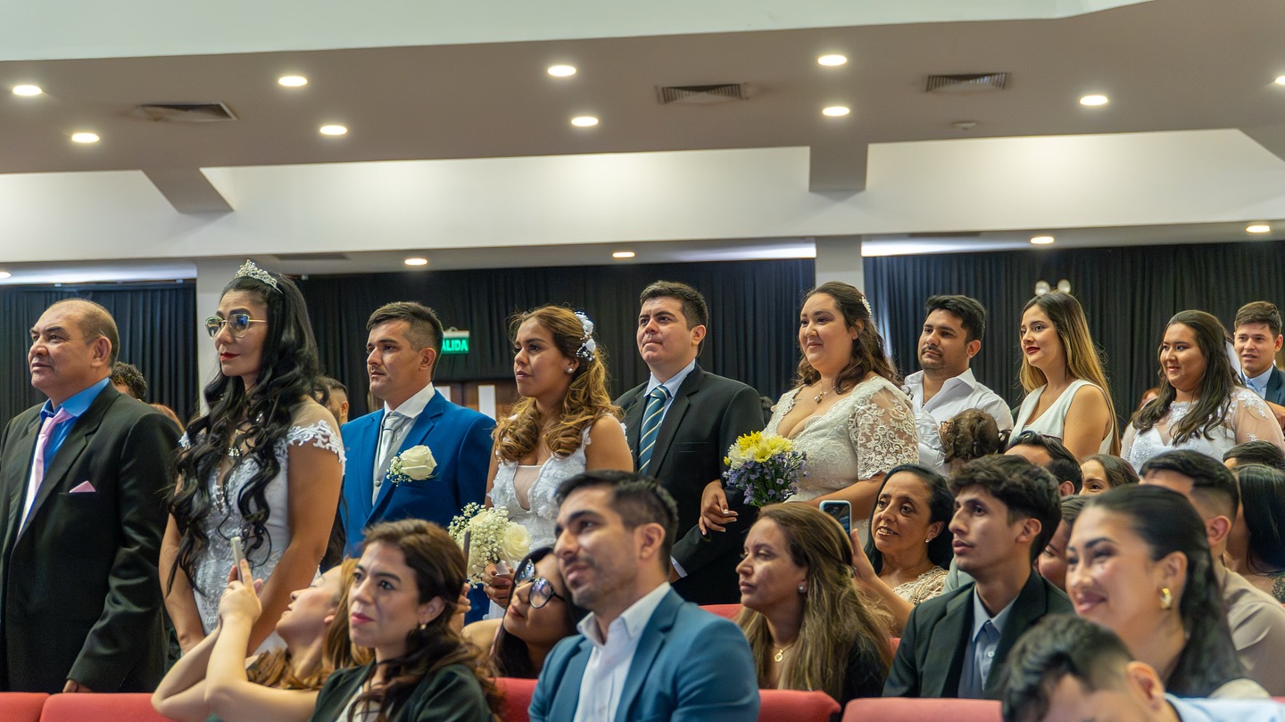 Destacó asimismo que la ceremonia contó con la presencia y el apoyo de diez oficiales del Registro Civil, quienes dedicaron su jornada al servicio de las parejas.