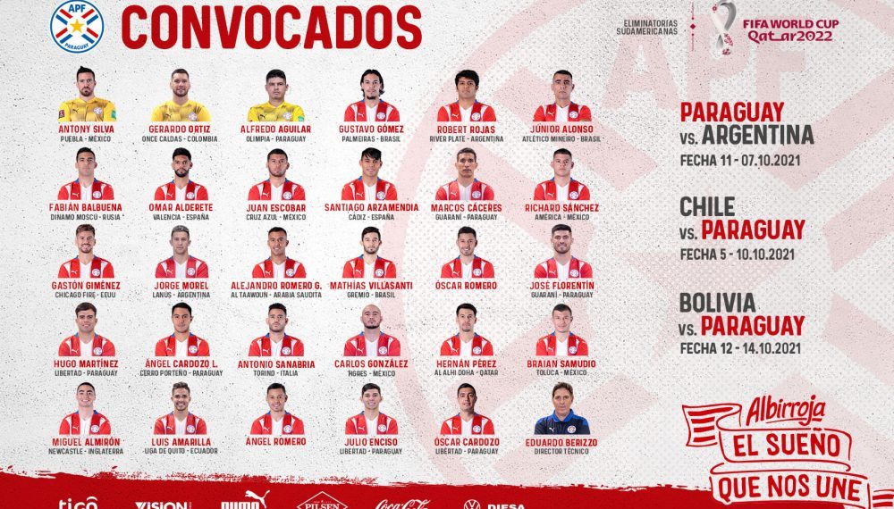 La lista se completó en horas de la noche de este domingo tras la finalización del último duelo de la undécima fecha, en ella fueron llamados siete convocados del plano local: Alfredo Aguilar, Marcos Cáceres, José Florentín, Hugo Martínez, Ángel Cardozo Lucena, Julio Enciso y Óscar Cardozo.