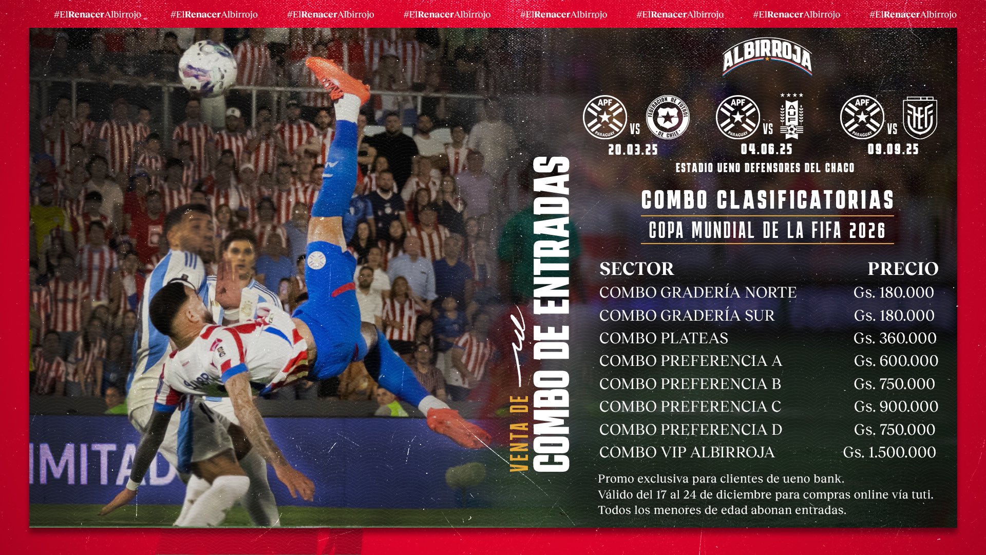 Bajo el lema «Combos de Navidad», esta promoción busca fortalecer la pasión y el apoyo de la afición paraguaya en los encuentros decisivos que se disputarán en el estadio Defensores del Chaco.