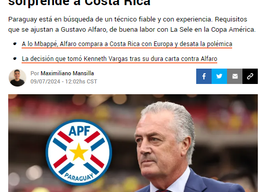 La noticia ha resonado en los medios costarricenses, destacándose algunos titulares de la página futbolcentroamerica.com: «Selección de Paraguay quiere robarse a Alfaro» o «Costa Rica envía fuerte mensaje a las selecciones que se quieren robar a Alfaro».