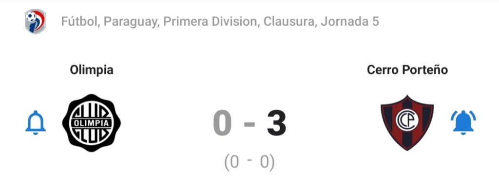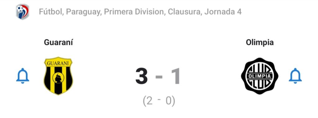 En el actual campeonato Apertura, Olimpia suma 9 puntos y se ubica a diez unidades del líder Libertad que tiene 19 puntos, equipo al que enfrentará la próxima fecha en Para Uno. El Decano está sin ganar desde la fecha 4 cuando cayó derrotado 3-1 ante Sportivo Trinidense, luego igualó 1-1 ante Guaireña, después empató 2-2 ante Cerro Porteño en el superclásico y por la regularización de la fecha 2 igualó 1-1 ante Nacional.