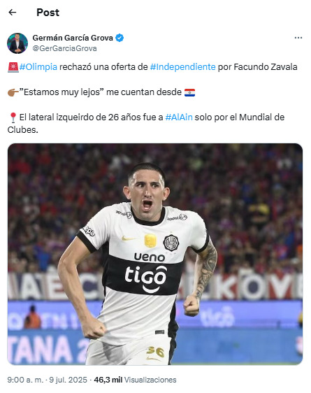 Según el periodista argentino Germán García, el “Rojo” realizó una nueva oferta para hacerse con el 50 % del pase del jugador franjeado. La propuesta alcanzó los 1.2 millones de dólares, e incluso se barajó la inclusión de algunos jugadores como parte de la operación. Sin embargo, Olimpia desestimó nuevamente el ofrecimiento, dejando en claro que no está dispuesto a desprenderse de Zabala fácilmente.