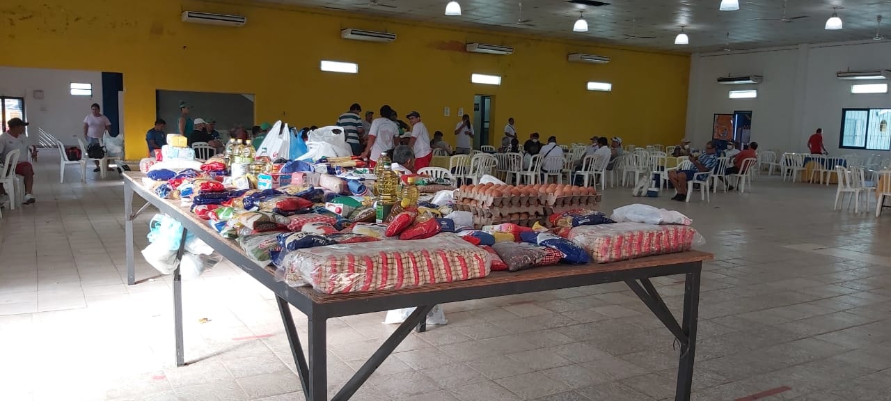 Las personas que asistieron al estadio como público entregaron alimentos no perecederos como aporte para la causa solidaria.