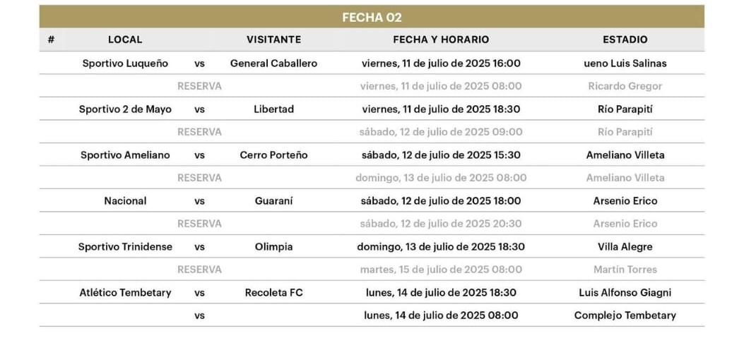 De acuerdo con la programación oficial, Cerro Porteño visitará la Fortaleza en la segunda fecha, el sábado 12 de julio a las 15:30. Por su parte, Olimpia hará lo propio en la cuarta jornada, el domingo 27 de julio, también a las 15:30.
