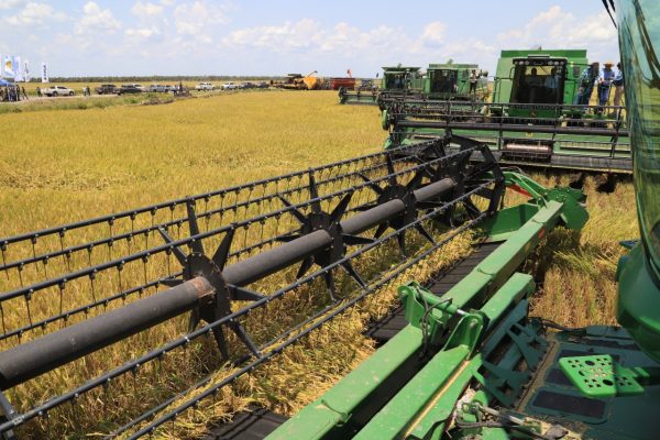 «Estamos mirando con gran satisfacción la consolidación de la producción de arroz en esta parte del país, con rindes extraordinarios, parcelas con nueve a 10 toneladas y algunas otras dando más de 12 toneladas», resaltó el ministro Bertoni durante el inicio de la cosecha realizado el miércoles en la Estancia 7 Puntas, departamento de Presidente Hayes.