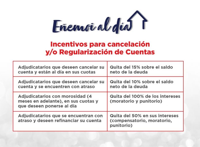 Además del pago de cuotas y regularización de deudas, durante este periodo los beneficiarios podrán solicitar la restructuración de sus deudas, con nuevos montos de cuotas y plazos dependiendo de sus ingresos mensuales.