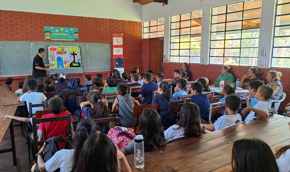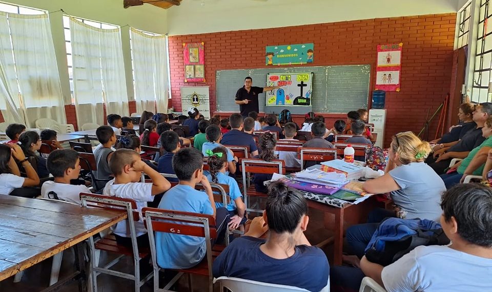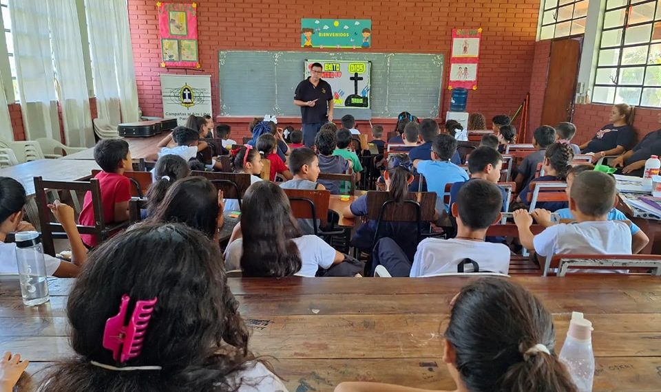 En esta ocasión, la Escuela Básica N°1359 Dr. Carlos Cálcena de Patiño se beneficia de las actividades y charlas de CAL Paraguay. La organización orienta a los alumnos, alentándolos a priorizar a Dios como base fundamental para un estilo de vida saludable y positivo.