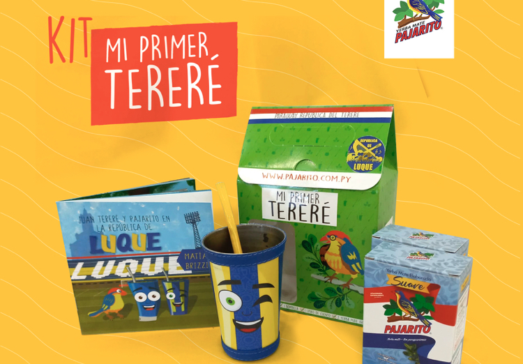 Este nuevo kit “Mi Primer Tereré” contiene un libro ilustrado de Juan Tereré, una guampa, una bombilla y dos yerbas pajarito suave de 40 gramos.